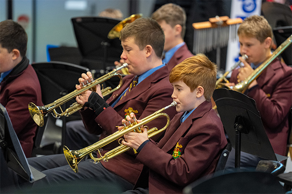 Holy Cross College has a long and proud Band tradition stretching back though the history of the college. Acting on the latest brain development research, through the Amadeus Music Program, all Year 7 students are given an instrument and tuition and participate in the Beginner Band. They also have the option of continuing on in Intermediate Band or Senior Band, both of which have had great success in recent years in the Ryde Eisteddfod, the Sydney Catholic Schools Eisteddfod and the Granny Smith Festival. They also perform at assemblies, the college open day and go on tours of the local primary schools.